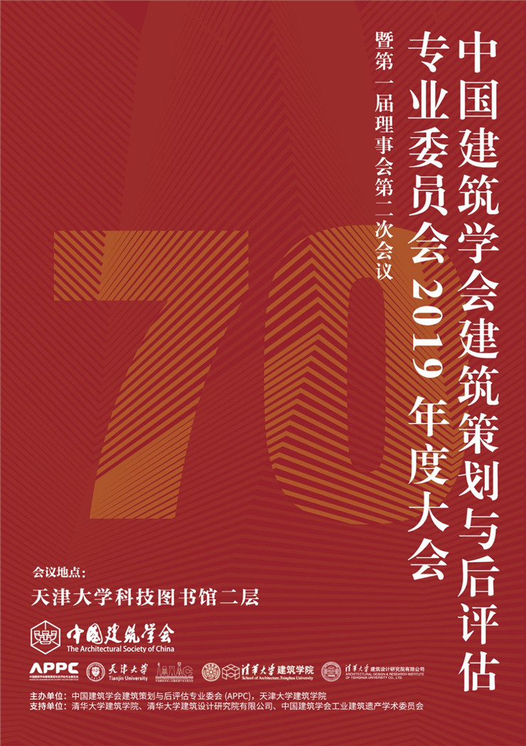 2019年11月30日,“中國建筑學會建筑策劃與后評估專業委員會2019年度大會暨第一屆理事會第二次會議“在天津大學順利召開。本次大會由中國建筑學會建筑策劃與后評估專業委員會(APPC-ASC)和天津大學建筑學院聯合主辦,清華大學建筑學院、清華大學建筑設計研究院有限公司、中國建筑學會工業建筑遺產學術委員會協辦。媒體支持單位包括《建筑學報》、《世界建筑》、《新建筑》、《AC建筑創作》、《住區》雜志等多家媒體。來自全國近百位知名的建筑和城市設計專家、策劃及后評估專家齊聚天津,展開了多層次、多角度的研討。