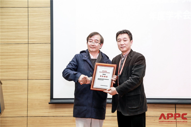 大會最后舉行了主辦單位的頒證儀式,APPC主任委員莊惟敏首先向此次大會聯合主辦方天津大學建筑學院院長孔宇航頒發感謝證書,同時向2020年的聯合主辦方的代表同濟大學建筑學院院長李振宇頒發證書。APPC2020年度大會將在上海同濟大學舉辦。