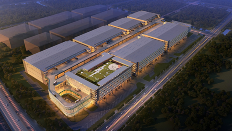 基地位于常熟市區正南方,其東側的G524快速路是進入市區主要通道,項目總占地面積為323023.00m2,建成后將成為亞太地區單項目面積最大的物流設施項目。本次開工的一期工程,含多層倉庫7棟。用地面積128783.42m2,建筑面積358087.78m2。