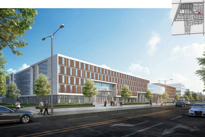 該項目選擇梯度開發模式,分五期開發建設,本期開發用地面積約300畝,建筑面積約21萬平方米。
