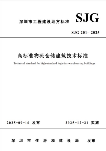 由深圳市房屋建設局發布的深圳市工程建設地方標準《高標準物流倉庫建筑技術標準》SJG201-2025將于2025年12月31日實施。