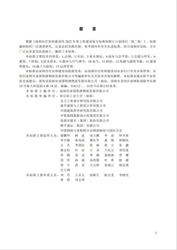 本標準由深圳市深國鐵路物流發展有限公司主編,作為參編單位建學建筑與工程設計所有限公司的許潔、王靈、王紀元、鄭代俊、李鶴、姜垚等多位工程師參與了標準的起草工作。