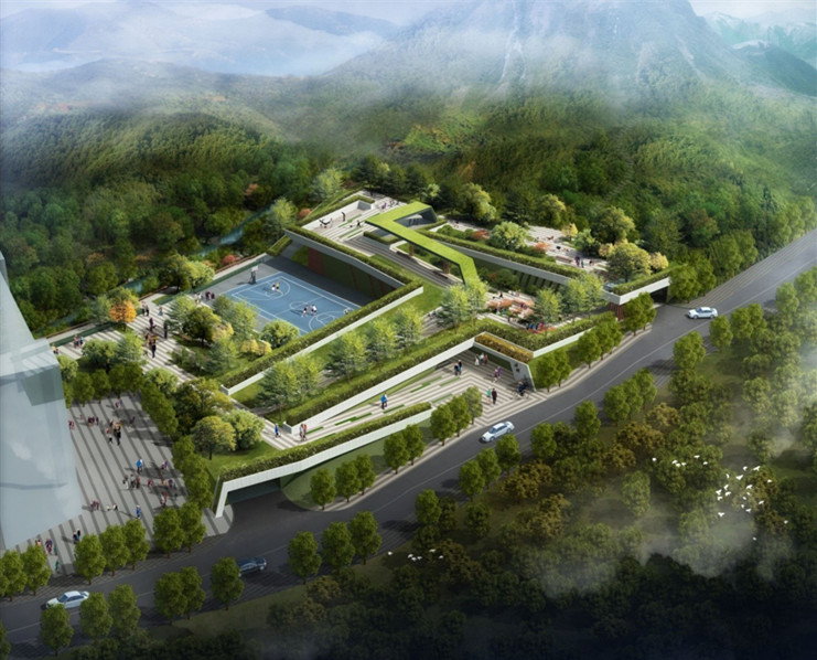 近期,在“深圳市鹽田區(qū)海桐公園(設(shè)計)”競標中,建學(xué)深圳分公司憑借對項目的深刻理解,對現(xiàn)狀的詳盡調(diào)研,對項目重難點的深入分析,打造一個功能復(fù)合、流線立體、造型現(xiàn)代的“立體公園”。 下圖為鳥瞰圖 海桐公園位于深圳市鹽田區(qū)鹽田港后方陸域西南方,海桐社區(qū)中心位置,緊鄰海桐社區(qū)綜合服務(wù)樓、背靠梧桐山和萬科金山碧海居住小區(qū)。項目用地面積10410平方米,規(guī)劃用地性質(zhì)為公園綠地+交通場站用地。 由于本案場地空間有限且高差較大,因此,考慮功能區(qū)塊立體化,從而達到最大化的利用空間,實現(xiàn)功能復(fù)合設(shè)計。我們通過挖掘“海桐”社區(qū)文化,在景觀小品設(shè)計、植物配置等方面加以體現(xiàn)。為市民提供有歸屬感的社區(qū)公園。結(jié)合周邊不同的人群需求,在設(shè)計中增設(shè)充滿趣味的節(jié)點空間和景觀界面。充分體現(xiàn)文體公園的特征,為市民提供多樣文體娛樂設(shè)施服務(wù)。在植物配置上,積極響應(yīng)“鹽田花城”口號,通過利用場地地形空間,分層綠化,從而提高場地的生態(tài)效益。 下圖為鳥瞰圖 下圖為入口效果圖