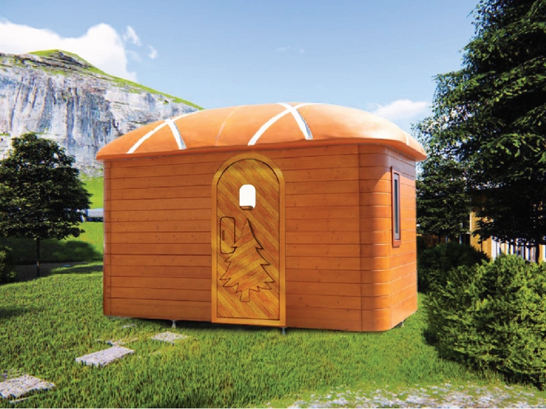 面包屋是一種純實木構建組成的微型裝配式建筑單元,長方體,四個角為弧形,屋面為專利材料拱形,面積10平方米,外觀看起來像一個剛出爐的面包,故名為面包屋。
