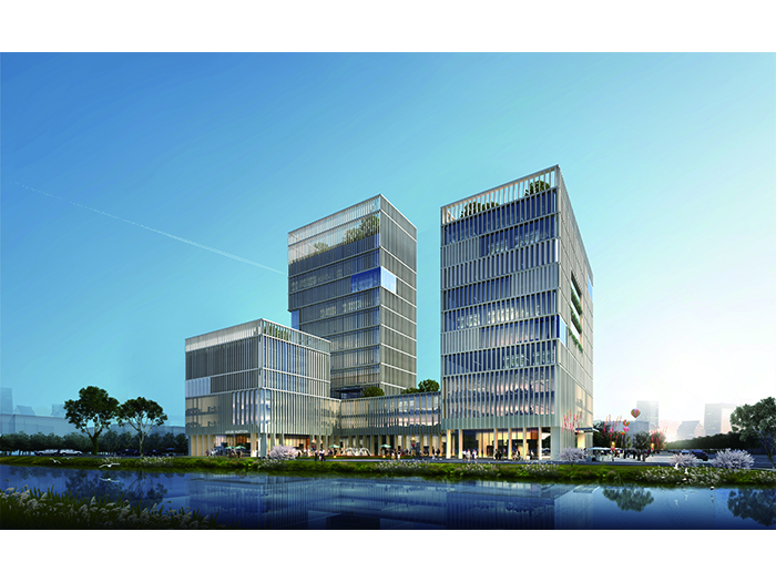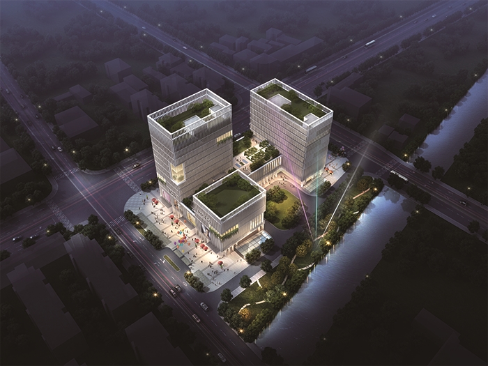 根據該項目功能分區情況,建筑體量分為3部分。并由北向南依次展開。主體以豎向板式為主,結合水平體量和局部會議功能設置突出體塊形成交錯有致、層次豐富的體量形態。