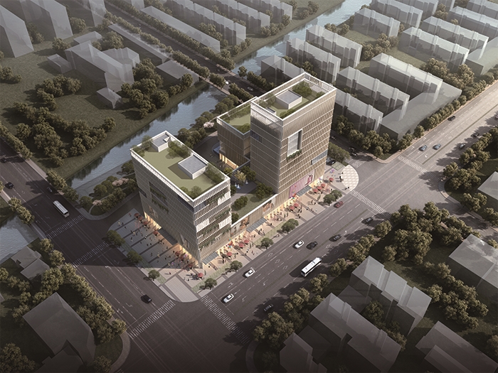 該項目設計理念:“一水雙山”是杭州余杭獨特美景,山是意向,水是載體,虛實相映,真幻結合,亦詩亦畫,山與水的結合換發出她獨特的迷人風情。 建筑造型通過體量整合,形成佇立在香店河岸的巍峨雙山,寓意“一水雙山”,同時也暗合杭州市與山、水的聯系,象征著本案扎根于故地,源遠流長的發展背景。