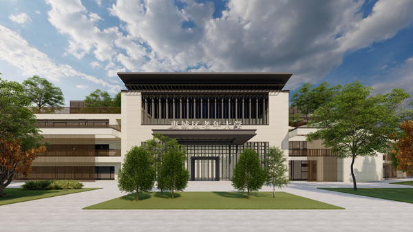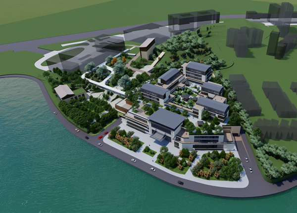 設計中汲取傳統園林建筑空間之精髓——庭、廊、園,營造具有傳統中式院落的趣味,以“一軸三院五庭”的設計布局,將各主體功能串聯,呈現現代建筑的簡潔的建筑群落,打造獨具一格的“惠城印象”。