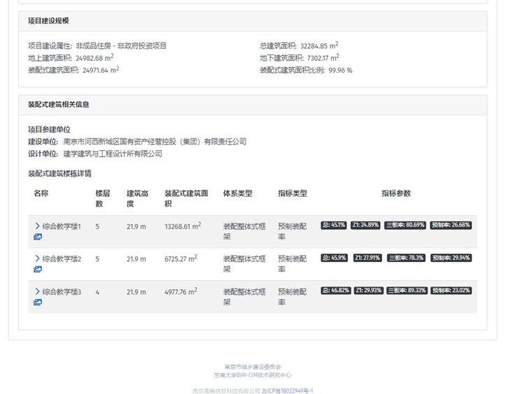 其中綜合教學(xué)樓1,預(yù)制裝配率45.1%,三板率80.69%。綜合教學(xué)樓2,預(yù)制裝配率45.9%,三板率78.30%。綜合教學(xué)樓3,預(yù)制裝配率46.82%,三板率89.33%。
