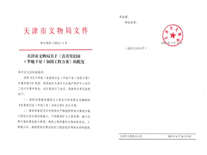 首善堂舊址(半地下室)加固工程方案獲天津市文物局批復通過 |