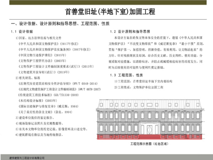 近日由我公司編制的《首善堂舊址(半地下室)加固工程》方案經天津市文物局組織天津市文化遺產保護中心召開評審會對本方案進行了專家論證,原則同意我公司編制的《首善堂舊址(半地下室)加固工程》設計方案。
