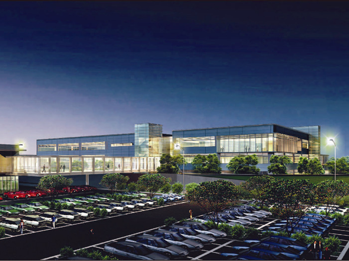 建筑造型以滿足功能需求為目標,外觀上則展現汽車工業建筑應有的純粹與流暢,讓使用者相信自己的直覺與對美的感受。所以我們采用最基本的建筑幾何塊體,構筑成辦公樓與研發中心。不僅在空間上得到高效率的使用,而且在立面的表現上,以簡潔明快的線條,體現汽車工業的精確與速度。