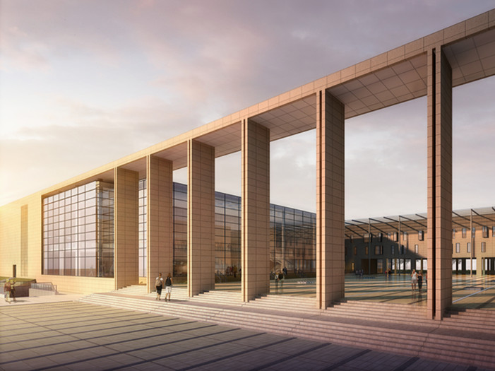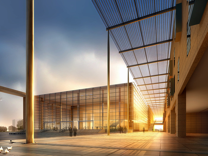 分宜文化中心由大劇院,博物館和圖書館三個主要部分組成,是分宜縣文化生活的中心。設計力圖通過一個公共的前院的營造,串聯起城市的各部分空間,使之成為市民文化生活的公共舞臺和焦點。我院完成建筑,景觀及市內設計