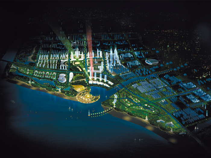 青島西海岸都市核心區城市設計控制性規劃方案,規劃面積為2.5平方公里,由水城及政府和新區兩部分組成,其規劃結構為“2軸4面”的結構,一條以政府大樓為中心的“行政軸”;一條沿深圳路向海洋發展的“海洋文化軸”;擋浪壩以東沙灘為第一個層面;公共沙灘面,海濱中央與擋浪壩之間為第二個層面;公共綠化地面;濱海中央路與海濱大道之間為第三個層面;海濱大道以西,以北為第四個層面。濱海中央路北段以旅游度假,高級居住區和海水浴場為主。度假酒店要與海水浴場鏈接方便,而海水浴場在空間上視線上保持一定距離。