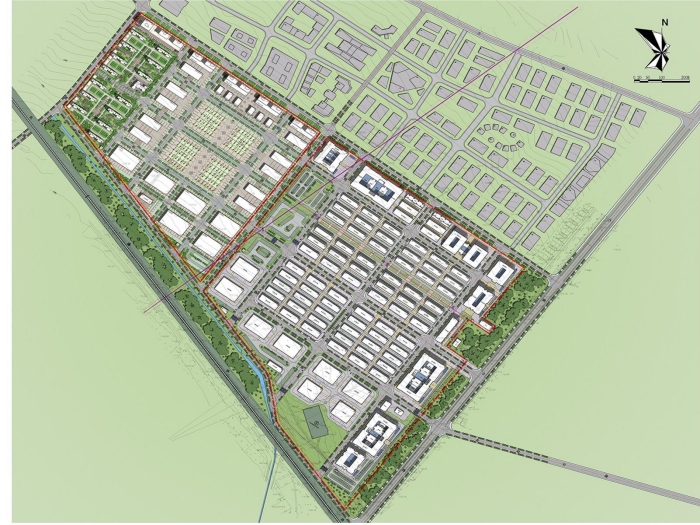 規劃方案充分考慮商貿經營、物流運輸使用要求并注重與自然地形有機結合,在現代實用理念的模式下,重視塑造一個科學、整潔、有序的商貿區,張弛有序的設計,構成豐富的空間層次。外圍商務辦公建筑注重城市景觀的塑造,創造出現代感的城市形象和舒適的城市空間,形成優美的城市輪廓線。
