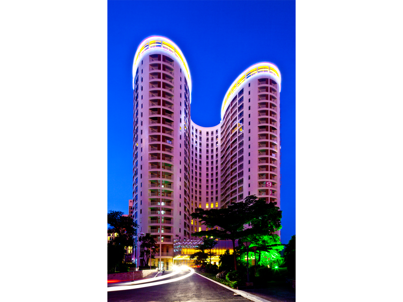 小區分二期建設,南側為一期,北側為二期。二期的公寓設計以弧線出現,給整個小區帶來活潑的元素。一期住宅、二期酒店式公寓的主入口設于西側,次入口設于東側,商業置于西側。東、西側設有內部車道,機動車進入小區后由主干路直接進入地下車庫和到達大堂門口,人流則從東西兩側的花園步行進入住宅,有效地達到人車分流,把住宅、商業人流,車流基本分開;西側公寓一、二層設有商業網點,豐富了社區內住戶的生活內容,使得整個小區的生活氣氛在閑適的情調下又不失便利,貼近現代社會生活。