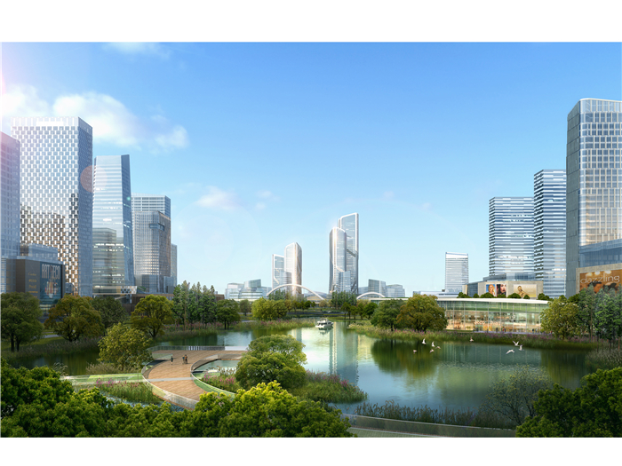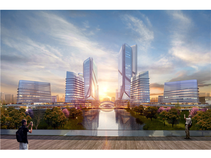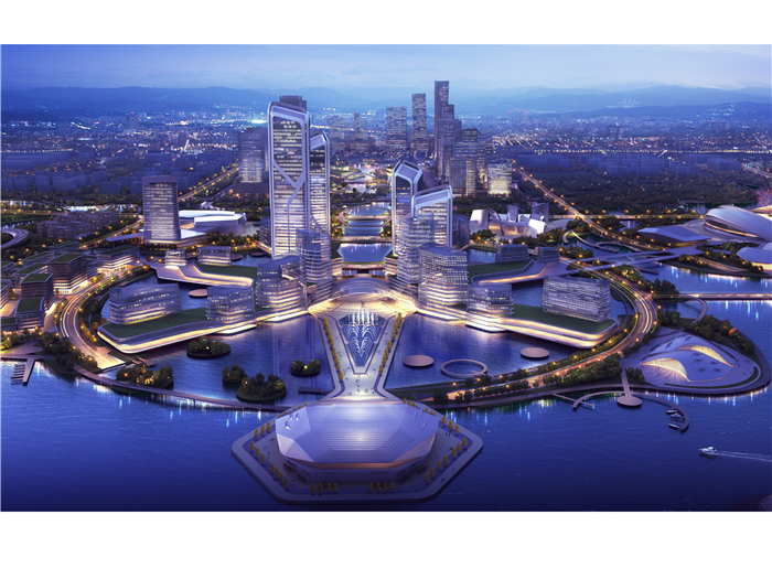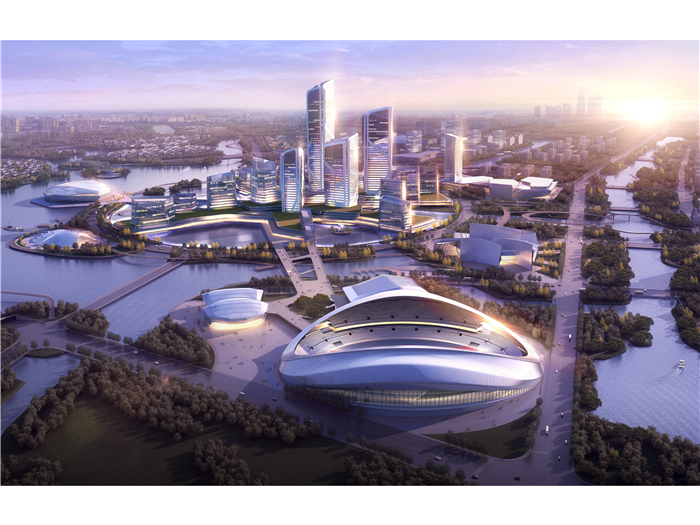 本項目位于杭州城西科創大走廊中部、作為未來科技城南北向景觀軸線南端,旨在打造成為第一個綠島上的具有世界影響力的文化科技交流中心。具有劃時代意 義的科技文化中心占地約4.5平方公里,其中核心區用地面積約1平方公里。未來三條地鐵線路及城際線經過基地,并接通規劃中的杭州西站。設計面臨的挑戰在于如何通過考慮人流及交通關系來合理分布三大主要功能,包括體育,文化及科技綜合體,以及如何重塑具有杭州特色風貌的國際化科技文化中心形象。