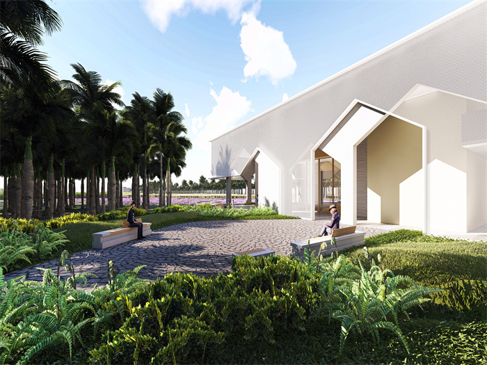 在海南,常年氣候炎熱,且花田內缺乏遮蔭,為了增強游客體驗,并且打造出一個用節點串聯起來的連續景觀游覽區域,我們提高標準至三分鐘步行圈范圍,確保田園花海不再是擺設,確保花海田園可以有效的支撐兩個村莊的業態,并將其進行有效的連接