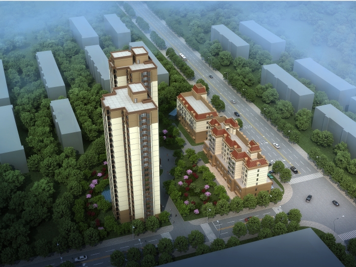項目將居住配套公共服務設施布置在沿席廠下坡的4#樓和1#住宅樓,既突出了席廠下坡的商業氣氛,又很好的滿足了小區居民的日常需求,還隔絕了席廠下坡對小區內部的干擾。在小區內部2#住宅樓和3#住宅樓的布局中,優先考慮良好的朝向和較長的日照時間,充分體現“以人為本”的設計原則。