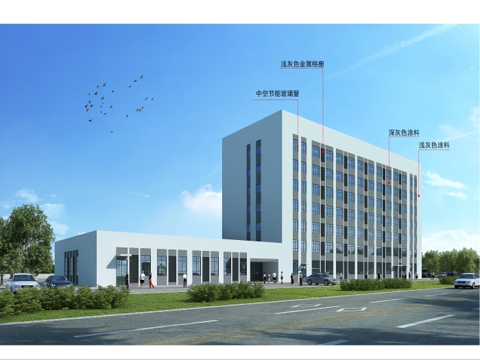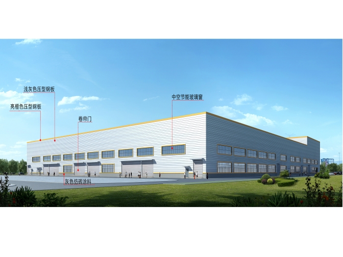 本項目建設單體包括1#廠房、2#廠房(二期)、設備房、綜合樓、傳達室及鍋爐房等。規劃將綜合樓、設備房、傳達室沿城市道路遼寧道依次布置,以方便外來人員及辦公人員的出入及市政條件的接入。由綜合樓向西依次分布1#廠房、空藍存放場地、2#廠房,形成功能相對獨立的廠房生產區及辦公設備區,分區明確、流線清晰,互不干擾。