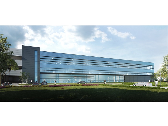 以基地南北中軸線兩邊各布置一棟主廠房,兩棟主廠房通過空中連廊連接各自的夾層空間。同時在主廠房南側(cè)結(jié)合工藝需求布置兩棟廠房,由此構(gòu)成整個園區(qū)的生產(chǎn)布局。基地東側(cè)配建有1#廠房附屬辦公、停車樓、食堂以及倒班樓等配套生活設(shè)施,自成一體的同時又與生產(chǎn)區(qū)緊密聯(lián)系。根據(jù)整個園區(qū)的生產(chǎn)工藝流程,在主廠房的南北側(cè)均布置了裝卸貨場地。園區(qū)流線分明,形成客貨分流、人車分流,使園區(qū)交通高效運轉(zhuǎn),更好的服務(wù)于園區(qū)生產(chǎn)。