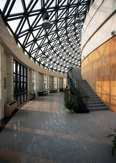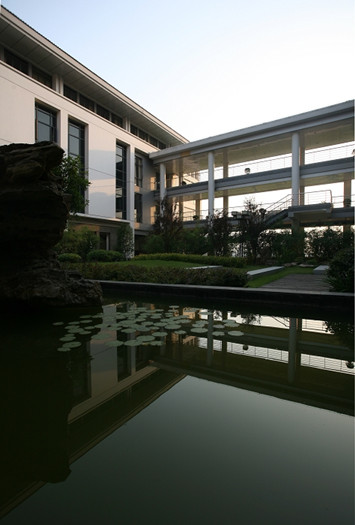 規(guī)劃從整體空間環(huán)境出發(fā),強調(diào)建筑整體與自然環(huán)境的和諧統(tǒng)一,在可持續(xù)發(fā)展與開放建筑的設(shè)計理念指導(dǎo)下,對新時代行政中心設(shè)計提出了一種新的模式——分散呈網(wǎng)絡(luò)狀布局的單元組合式辦公建筑。設(shè)計充分利用新行政中心用地特有的自然地理優(yōu)勢,對原有山形和水系進行整合,將四套班子辦公分為四個組團,分別置于四個高地上,中心處為會議中心,各組團以環(huán)廊連接,形成一個有機的整體。各組團辦公用房都朝向南,以多層次的庭院相串聯(lián),并且引入周邊風、林、山以及人文景觀,使行政中心融入?yún)^(qū)域地景,形成天、地、人合一的環(huán)境。